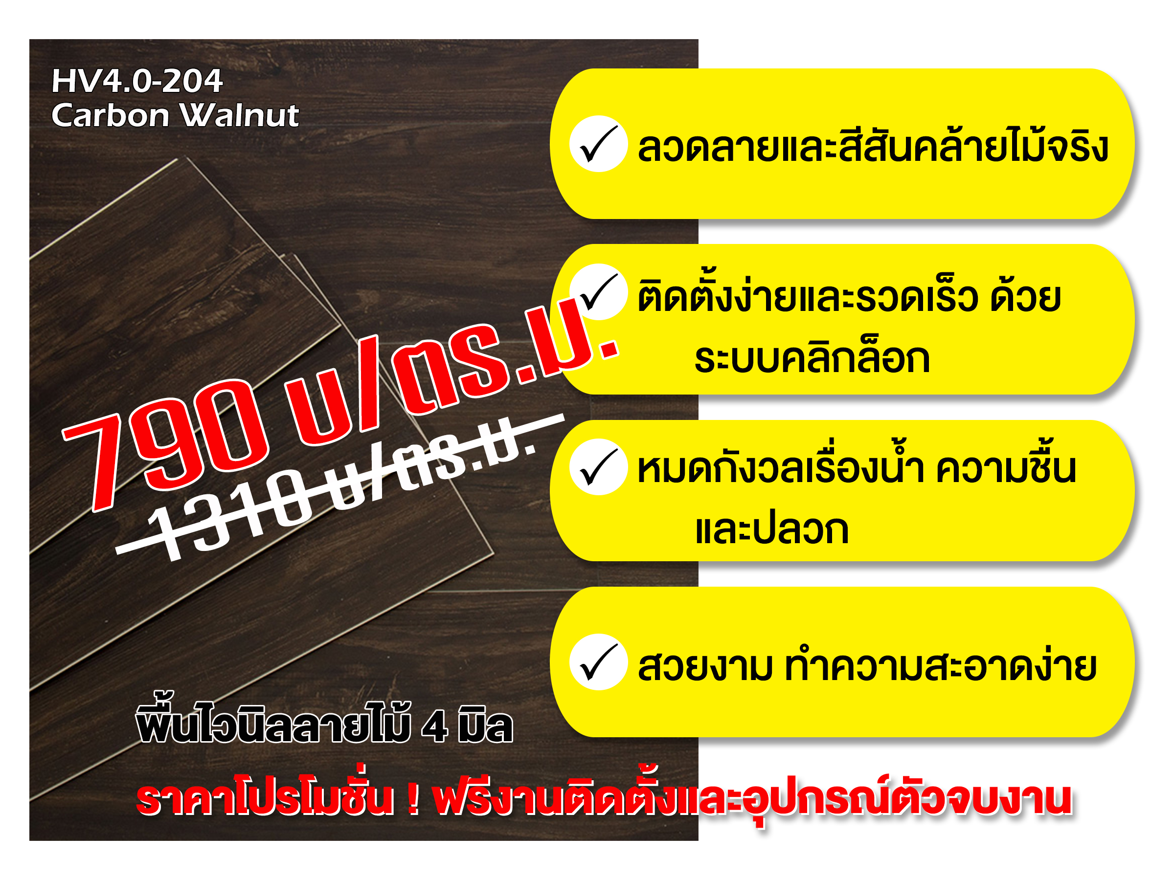 พื้นไวนิล SPC 4.0 mm. พร้อมติดตั้ง 790 บาท/ตรม.