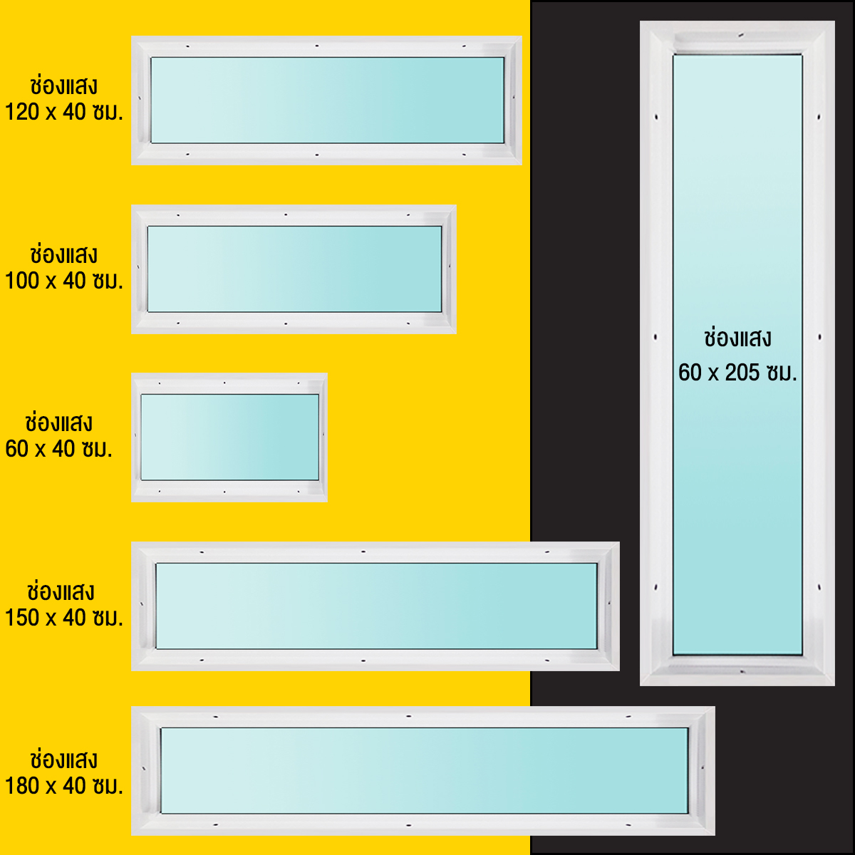 - หน้าต่างบานช่องแสง มี 6 ขนาด ราคาโปรฯ เริ่มต้น 610 บาท/ชุด