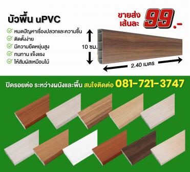 บัวพื้น uPVC ติดตั้งง่าย ผลิตจากไวนิลคุณภาพดี มีความยืดหยุ่นสูง ไม่กรอบแตกง่าย ยาวเส้นละ 2.40 เมตร สูง 4 นิ้ว (10 ซม.) มีให้เลือกกว่า 11 สี - ข...